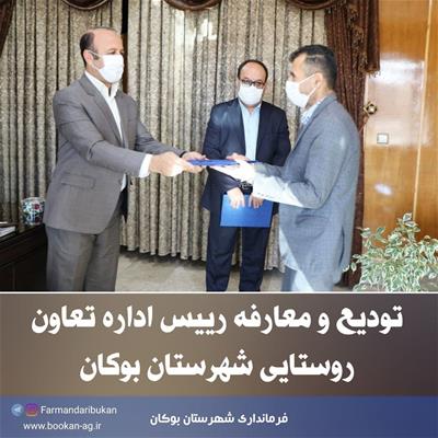 به گزارش روابط عمومی فرمانداری شهرستان بوکان؛ روز سهشنبه (۹۹/۱۰/۳۰) با حضور مهندس «امینزاده» فرماندار شهرستان بوکان، «کریمنژاد» معاون اداری و مالی تعاون روستایی آذربایجانغربی، از زحمات شش ساله آقای «علی صالحزاده» تقدیر و قدردانی به عمل آمد و آقای «قادر محمدیآذر» به عنوان رییس اداره تعاون روستایی شهرستان بوکان معرفی گردید.