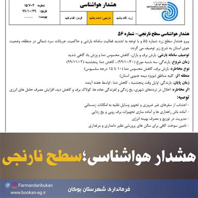نوع مخاطره: بارش باران، کاهش محسوس دما و وزش باد شدید