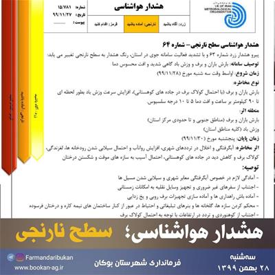 نوع مخاطره: بارش باران و برف (با احتمال کولاک برف در جادههای کوهستانی)