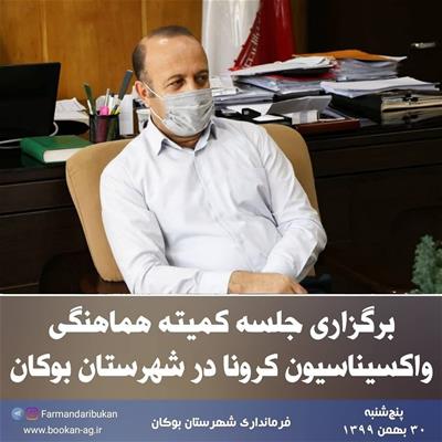 به گزارش روابط عمومی فرمانداری شهرستان بوکان، روز پنجشنبه (۹۹/۱۱/۳۰) جلسه کمیته هماهنگی واکسیناسیون کرونا با حضور «امینزاده» فرماندار بوکان، «حبیبزاده» نماینده مردم بوکان در مجلس شورای اسلامی، اعضای شورای تامین، رییس شورای اسلامی شهر، مدیر شبکه بهداشت و سایر اعضای کمیته در محل فرمانداری برگزار شد.