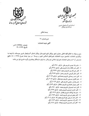 نتایج شمارش آرا نامزدهای شورای اسلامی شهر #بوکان به ترتیب دارندگان بیشتر رای