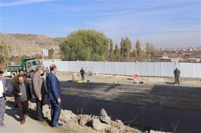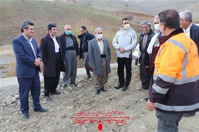 بازدید امین زاده فرماندار شهرستان بوکان و جمعی از مسئولین از پروژه آسفالت جاده روستای کوسه.