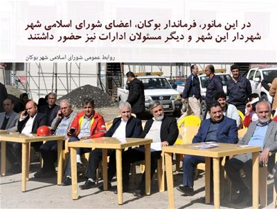 روز یکشنبه 21 اسفندماه 1401 مانور عملیات امداد و نجات، بازآفرینی و بازآموزی سازمان آتش نشانی و خدمات ایمنی با حضور فرماندار شهرستان بوکان، اعضای شورای اسلامی شهر، شهردار بوکان و مسئولین ادارات برگزار شد.