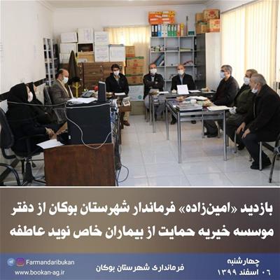 بازدید «امینزاده» فرماندار شهرستان بوکان از دفتر موسسه خیریه حمایت از بیماران خاص نوید عاطفه و دیدار با اعضای هیات مدیره موسسه