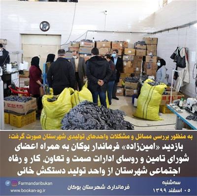 بازدید «امینزاده» فرماندار بوکان به همراه اعضای شورای تامین و روسای ادارات صمت و تعاون، کار و رفاه اجتماعی شهرستان از واحد تولید دستکش خانی واقع در شهرک صنعتی
