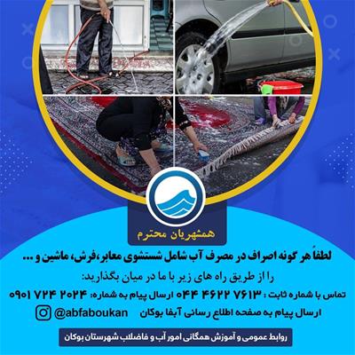 هر گونه شستشوی کوچه، معابر، ماشین، فرش و ... با آب شرب ممنوع بوده و با متخلفان برخورد خواهد شد.