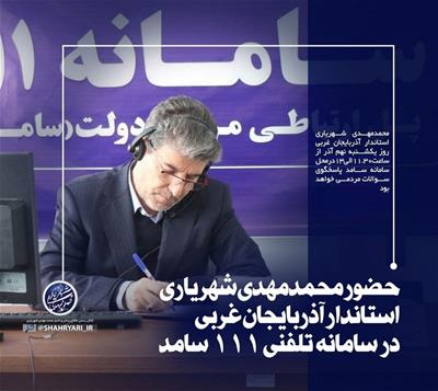 محمدمهدی شهریاری استاندار آذربایجان غربی با حضور در سامانه ارتباط مردم و دولت(سامد) و از طریق تلفن ۱۱۱ بهصورت مستقیم پاسخگوی تماسهای مردم عزیز خواهد بود.
