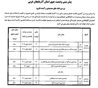 پیشبینی وضعیت جوی استان آذربایجانغربی