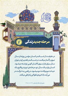 حضرت آیتالله خامنهای: در حقیقت از #شب_قدر، انسان مؤمن روزهدار، سال نوی را آغاز میکند. در شب قدر تقدیر او در دوران سال برای او از سوی کاتبان الهی نوشته میشود. انسان وارد یک سال نو، مرحلهی نو و در واقع یک حیات نو و ولادت نو میشود. در راهی به حرکت در میآید، با ذخیرهی تقوا این راه را طی میکند