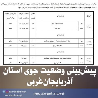 پیشبینی وضعیت جوی استان آذربایجانغربی