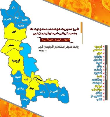 وضعیت کرونایی شهرهای آذربایجان غربی