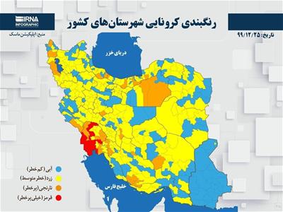 رنگبندی شهرستانهای نارنجی و قرمز کشور از تاریخ ۲۵ اسفند ۱۳۹۹ تا ۱۵ فردوردین ۱۴۰۰