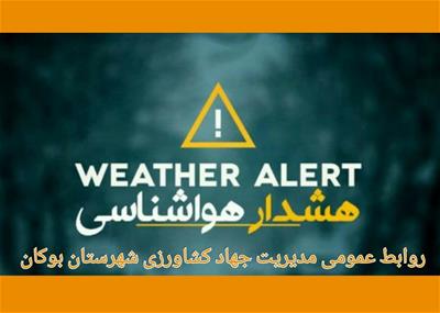 با توجه به صدور هشدار هواشناسی کشاورزی سطح نارنجی شماره 12 سازمان هواشناسی در خصوص نفوذ توده هوای سرد به کشور و به منظور جلوگیری از وارد شدن خسارات به محصولات و واحدهای گلخانه ای و قارچ های خوراکی مقتضی است تمهیدات لازم برای مقابله با خطر سرمازدگی و بارش برف در واحدهای گلخانه ای به شرح ذیل اتخاذ شود- چهارشنبه 25 اسفند 1400 ساعت 16:46