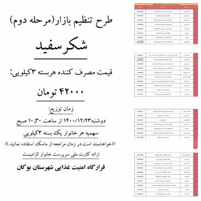 *اطلاعیه توزیع شکر سفید*