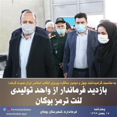 بازدید «امینزاده» فرماندار بوکان به همراه فرمانده سپاه پاسداران و جمعی از مسئولین شهرستان از واحد تولیدی لنت ترمز بوکان واقع در شهرک صنعتی همزمان با چهارمین روز از ایام الله دهه فجر