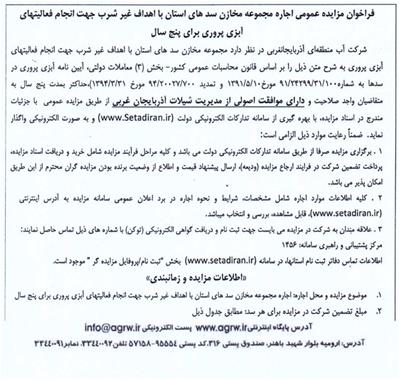 فراخوان مزایده عمومی اجاره مجموعه مخازن سدهای استان
