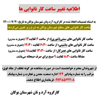 تغییر ساعت کار نانواییهای سطح شهرستان بوکان