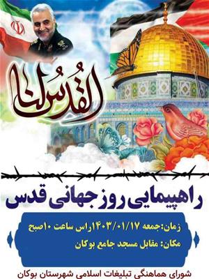 مردم روزه دار بوکان یک صدا جنایت های رژیم صهیونیستی در غزه را محکوم کردند