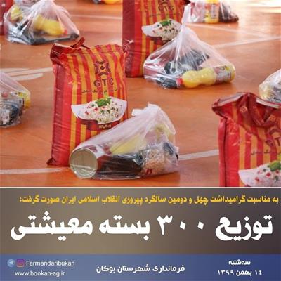 توزیع ۳۰۰ بسته معیشتی در بین اقشار آسیبپذیر توسط سپاه پاسداران انقلاب اسلامی در قالب رزمایش کمکهای مومنانه با حضور امام جمعه، فرماندار بوکان و اعضای شورای تامین