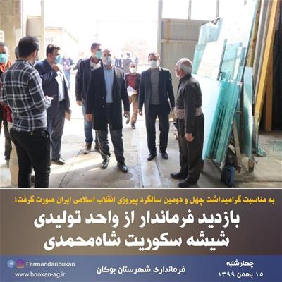 بازدید «امینزاده» فرماندار بوکان به همراه فرمانده سپاه پاسداران و جمعی از مسئولین شهرستان از واحد تولیدی شیشه سکوریت شاهمحمدی واقع در شهرک صنعتی همزمان با چهارمین روز از ایام الله دهه فجر