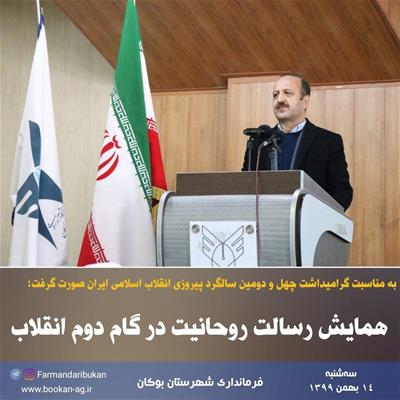 برگزاری همایش رسالت روحانیت در گام دوم انقلاب همزمان با سومین روز از ایام الله دهه فجر با حضور امام جمعه، فرماندار بوکان، اعضای شورای تامین و جمعی از روحانیون و مسئولین شهرستان در محل سالن دانشگاه آزاد اسلامی