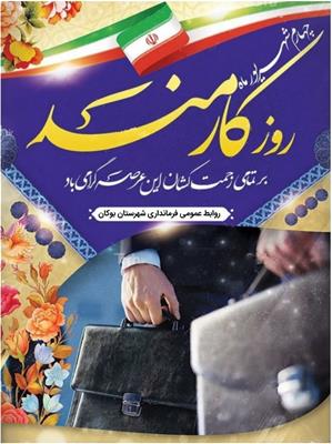 به گزارش روابط عمومی فرمانداری شهرستان بوکان روز شنبه مورخه 5 شهریورماه ١4٠١، به مناسبت هفته دولت و تبریک روز کارمند، مراسمی تحت این عنوان در محل سالن شهید رجایی فرمانداری شهرستان بوکان با حضور فرماندار،امام جمعه، اعضای شورای تامین و اداری برگزار گردید و از کارمندان نمونه ادارات شهرستان بوکان تقدیر و تجلیل بعمل آمد.