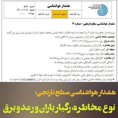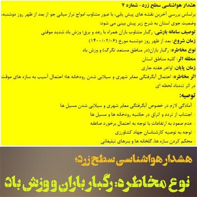 نوع مخاطره: رگبار باران (در مناطق مستعد تگرگ) و وزش باد