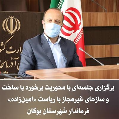 برگزاری جلسهای با محوریت برخورد با ساخت و سازهای غیرمجاز با ریاست «امینزاده» فرماندار شهرستان بوکان و با حضور جانشین فرمانده نیروی انتظامی، معاون دادستان، معاون فرماندار، بخشداران مرکزی و سیمینه، رییس شورای اسلامی شهر و شهردار بوکان و جمعی از مسئولین شهرستان در محل سالن جلسات فرمانداری شهرستان بوکان